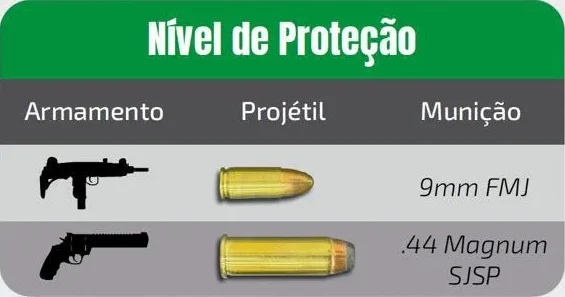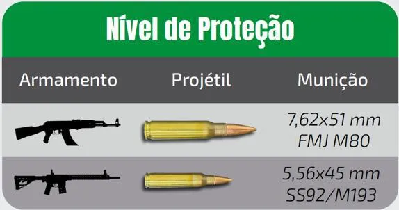 Atende integralmente aos requisitos da Norma ABNT NBR 15000-2:2020, assegurando proteção contra ameaças de armas longas no calibre 7,62×51 mm (M80) e, adicionalmente, contra disparos de 5,56×45 mm (M193).